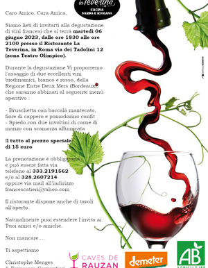 La degustazione organizzata il 07 giugno 2023 presso il ristorante "La Teverina" in Roma.