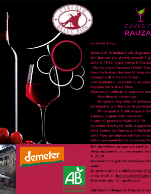 Il sig. Christophe Menges è da oltre venti anni viticoltore e socio della Cantina di Rauzan; dal 2015 si dedica con passione alla promozione ed alla commercializzazione dei vini della Cantina di Rauzan in Italia e, in particolare, a Roma.